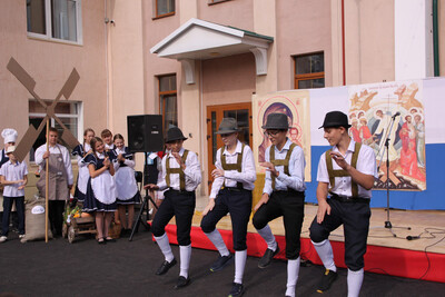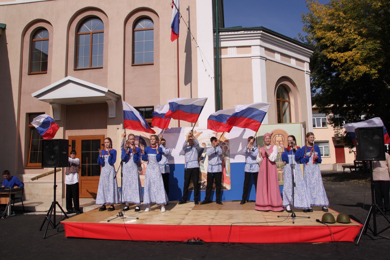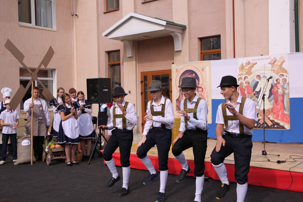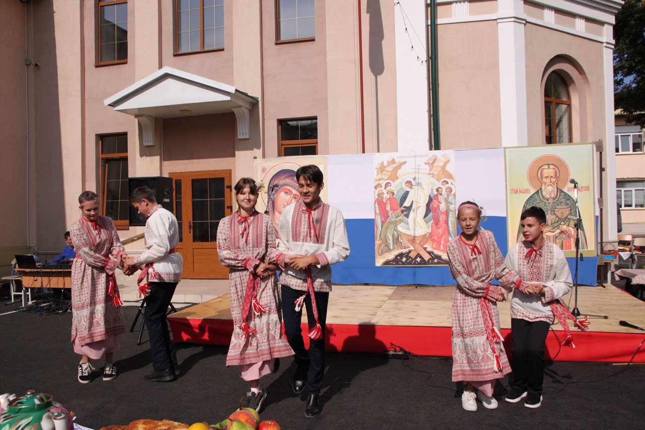 Утро началось с Божественной литургии, а затем торжества продолжились во дворе гимназии в формате «Этнокультурной мозаики». Здесь можно было встретить русских, белорусов, поляков, цыган, татар, грузин, молдаван, немцев и евреев.