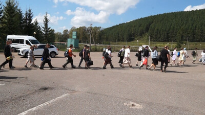 Пять часов дороги пролетели незаметно, ведь за окном мы увидели природные красоты: озера, горы и шиханы. И, конечно, говорили о православных святынях и месте, куда направляемся. Ребята отметили, что Табынскую икону почитают, как покровительницу Оренбургского края. И вот почему. Именно на территории Оренбургской губернии была явлена икона, и именно атаман казачьего войска Дутов спас ее от поругания в годы гражданской войны. Икона всегда спасала наши земли, например, в 1853 году от эпидемии холеры. И в честь этого заступничества Государь Император высочайше повелел соизволить: переносить ежегодно находящуюся в церкви села Табынского Стерлитамакского уезда икону Казанской Божией Матери в г. Оренбург в сентябре месяце и в г. Стерлитамак в IX Пятницу после Пасхи в сопровождении Крестного хода. К приносу святой иконы, ежегодно к 7 сентября, в Оренбург стекалась масса людей из ближайших сел, станиц и даже селений Бузулукского уезда Самарской губернии. Прибытие Табынской иконы встречалось всем городским духовенством, губернским начальством, местными войсками с оркестром полковых музыкантов. Внесение иконы в город сопровождалось праздничным колокольным звоном, прекрасным пением архиерейского хора, которое сливалось со звуками полковой музыки, играющей «Коль славен…». Присутствие парадирующих войск со знаменами, всенародное пение тропаря «Заступница усердная…» и шествие многочисленного духовенства в преднесении хоругвей и икон довершало торжество.