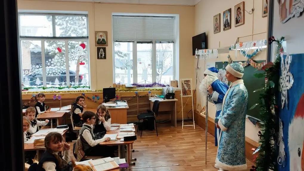 В последний день второй четверти, перед каникулами, прошел смотр кабинетов. Вместе с жюри в каждый кабинет зашли Дед Мороз и Снегурочка, они поздравили всех учеников. А ребята в свою очередь подготовили презентацию классов: читали стихи, рассказывали о традициях, кто-то пел песни, демонстрировал театральнве сценки. Каждый ребёнок показал Деду Морозу то, что сам изготовил для украшения класса и ёлки.
